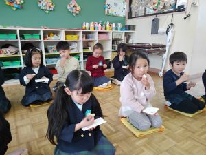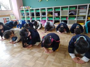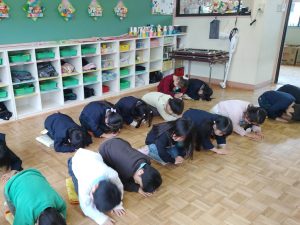 途中で足がしびれて動いてしまう子もいましたが最後まで頑張って参加することが出来ました。