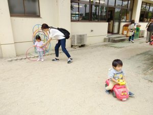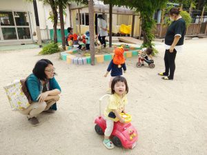 園庭で遊ぼうには、かわいい未就園児のお友だちがたくさん集まってくれました。