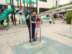 お母さんに支えてもらい、雲梯にも挑戦!!