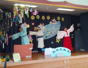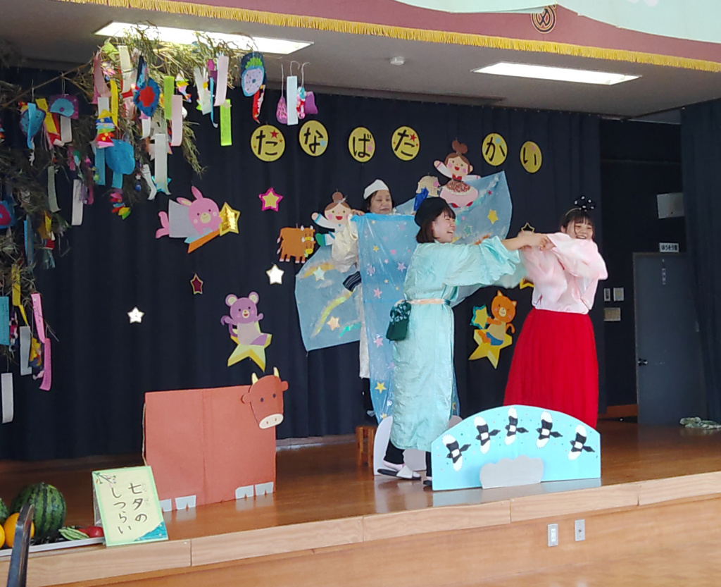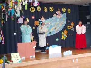 最後は、七夕劇です。織姫様と彦星様のお話を今から何が始まるのだろうと興味津々。