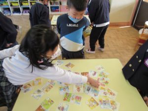 「はい!」と勢いよく札を取ります。誰が一番多く取れるかな?