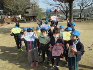 凧を持って園庭を駆け回ると「わ~あがったあがった!!」と歓声があがりましたよ!