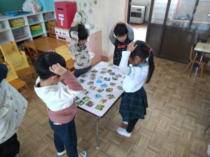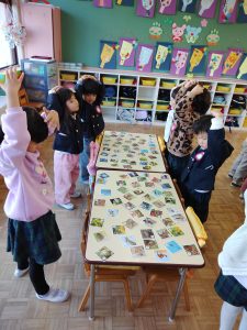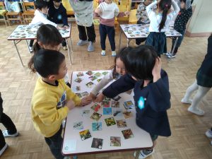 カルタは冬休みの間にご家庭で遊んでいた子も多く、読み札が読まれると元気一杯「はい!」と返事をして素早くとる姿が見られましたよ。