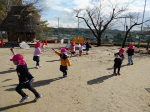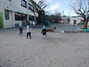 子ども園では、久しぶりに会った友達と色々なお正月遊びを楽しみましたよ。たくさんの友達と関わりながら、元気に遊ぶ姿が見られました。