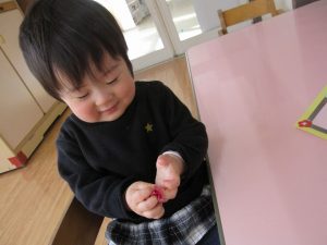 飾るとすぐに「あった!」「かーいー(かわいいー)」と指差しをして