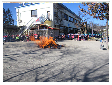 1年間の無病息災を祈願し園庭で毎年恒例のどんど焼きを行いました。