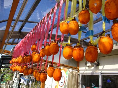 日光を浴びて甘くて美味しい干し柿になるのはいつでしょうか。楽しみです。