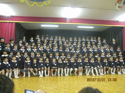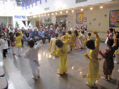 クラス毎に劇を披露し、みんなでクリスマスソングを歌いました。