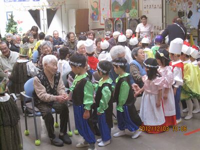 年中も年長も終了後のお年寄りとの触合いのひとときが和やかで温かでした。