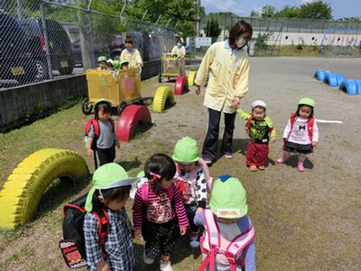 工事期間中は工事車両が通りますので、送迎の際は十分気を付けて下さい。