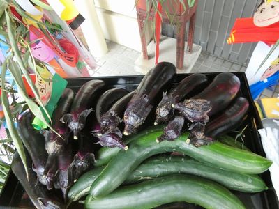 その中には年長さんが育てた胡瓜や茄子もありました。