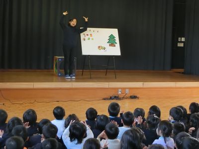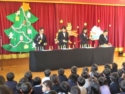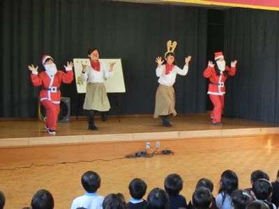 クリスマス会は皆で歌うクリスマスソング、職員のベル演奏とパネルシアター、そして「アナと雪の女王」の楽器演奏。