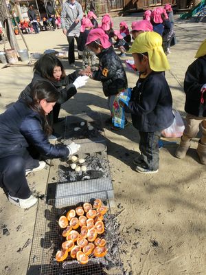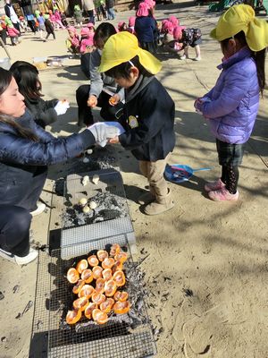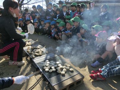 火にあたったりその火で焼いたお餅やミカンを食べて今年一年間の健康を祈りました。