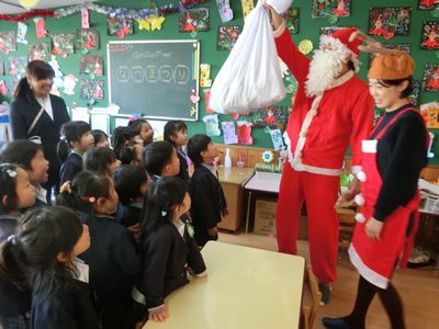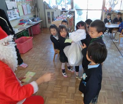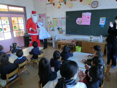 今年も各クラスを回ってプレゼントを配って下さいました。