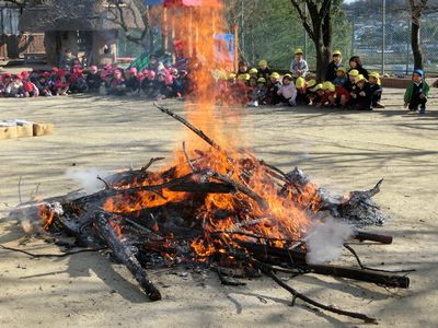 竹が爆ぜる音で災いを退け、立ち上る煙と共に正月の神様が帰っていかれるという言い伝えもある伝統行事です。