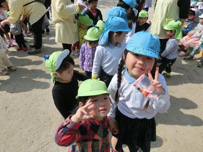 ・通園帽子に本日お渡ししました帰りのコースのリボンを付けてください。