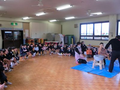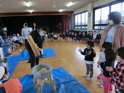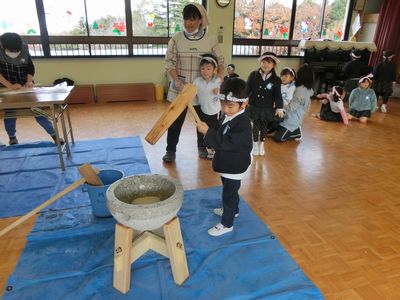 12月17日(火)に年長児がついたお餅を焼いて食べます。