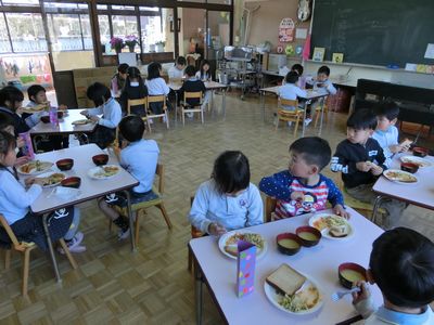 5歳児(ゆり・ふじ)→ふじ組 ※天候により、その後戸外で遊んでいます。